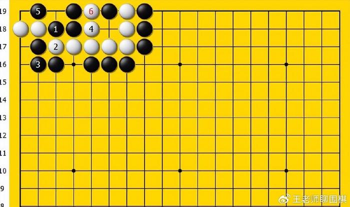 所以,黑棋5也只好提吃掉一线的一颗白棋,白棋6会继续一线立,来打吃整块黑棋,下达这个程度后,整块黑棋同样是会被白棋提吃掉,黑棋对杀失败!